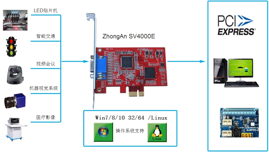 產品簡介 | SV4000E是一款新型的圖像采集卡,它采用PCI-E總線。SV4000E是新一代標清視頻采集卡,它支持960H標準,配合SONY EFFIO方案camera圖像質量比之前老一代采集卡提示35%以上。它最大分辨率可以到960*576,大于標準的D1視頻尺寸;它采用10BIT視頻芯片,獨具的4線3D梳狀濾波器能自動消除噪點,配合自主研發的Deinterlace算法和動態濾波算法使得圖像更清晰。產品支持標準Directshow開發. |