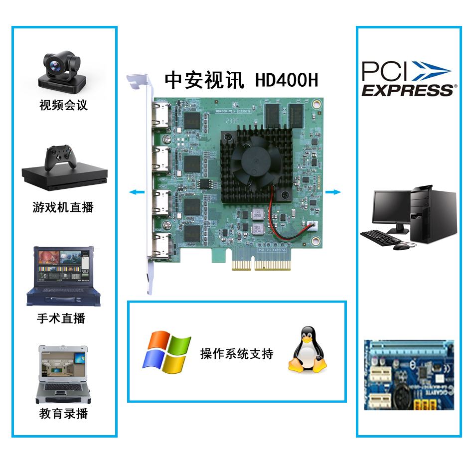 產品簡介 | HD400H一款支持全高清1080P 60H同時4路HDMI采集的高清視頻采集卡,板卡采用高速的PCI-E X4接口,可實現同時采集4路1080P全實時不丟幀60幀傳輸。支持4路HDMI輸入,滿足各種用戶的 需求,其最高分辨率可以實現1920*1080,支持真正10Bit實時HD全分辨率高清無壓縮視頻采集,實 現真正廣播級、 好萊塢電影級別的采集編輯,滿足各種全高清攝像機實時監視采集及抓圖的需求。 我們提供完整的SDK開發包,可以選擇VisualBasic、VisualC++、Delphi,C#,Python,Labview 等多種編程語言通過SDK進行開發。提供完整的Labview VI函數和測試demo程序,方便客戶快速開 發相關LABVIEW程序。我們還提供調用范例程序源程序及函數詳細調用說明,方客戶輕松開發自己 的應用系統;同時我們提供完善的開發技術支持,并可根據客戶要求量身定做SDK。 |
